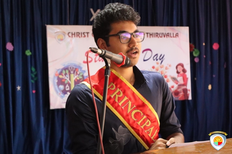 Christ Central School celebrated Students' Day on October 3rd, with the Heady Boy, Benson Thomas and the Head Girl, Joanna Sara Mathew taking charge as the Principal and the Vice Principal for the day, while Class XII students gained valuable teaching experience by conducting classes for their juniors. The day began with a ceremonial assembly where the keys were handed over to the student leaders, followed by a series of engaging activities. In the evening, the valedictory function saw the Student Vice Principal and student teachers sharing their inspiring experiences and reflections on a day filled with leadership, learning, and growth.